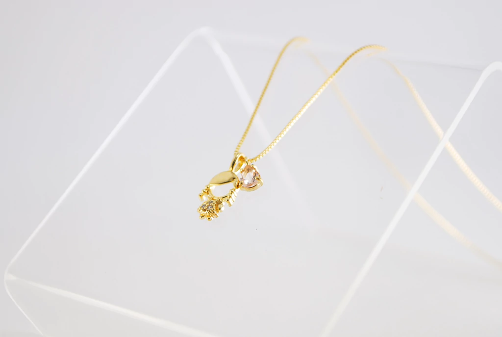 Gargantilha Menina com Zircônia Rosa – Elegância e Delicadeza em Ouro 18k!